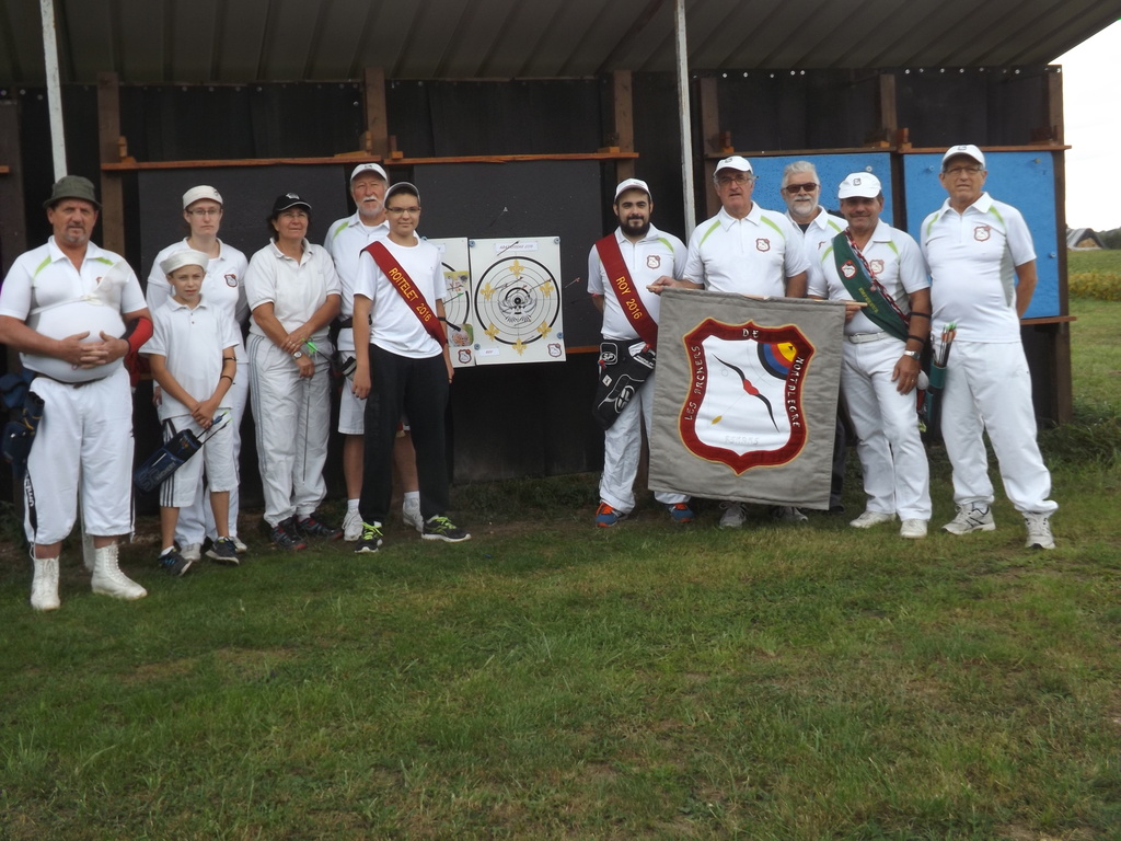 Samedi 5 septembre, les archers de la Cie de Montalègre se sont retrouvés sur leur terrain pour le traditionnel tir du Roy et du Roitelet. Le tir s’effectue sur un oiseau en bois de 5cm par 2.5 cm placé sur une cible à 50m pour les adultes et à 30m pour les jeunes. Chaque archer tire une flèche dans un ordre prédéfini. Il fallait être à l’heure en ce jour ensoleillé car en moins de 4 mn, les oiseaux étaient touchés dès leur première flèche par Pierrick PERRON chez les jeunes et Damien VINCENT chez les adultes. Fantastique coup pour Damien qui n’a qu’un an de tir à l’arc. Ils deviennent Roitelet et Roy pour l’année 2016. Ils participeront avec les Roys des autres Cies de Franche Comté au tir du Roy de ronde à Parcey en mai 2016.